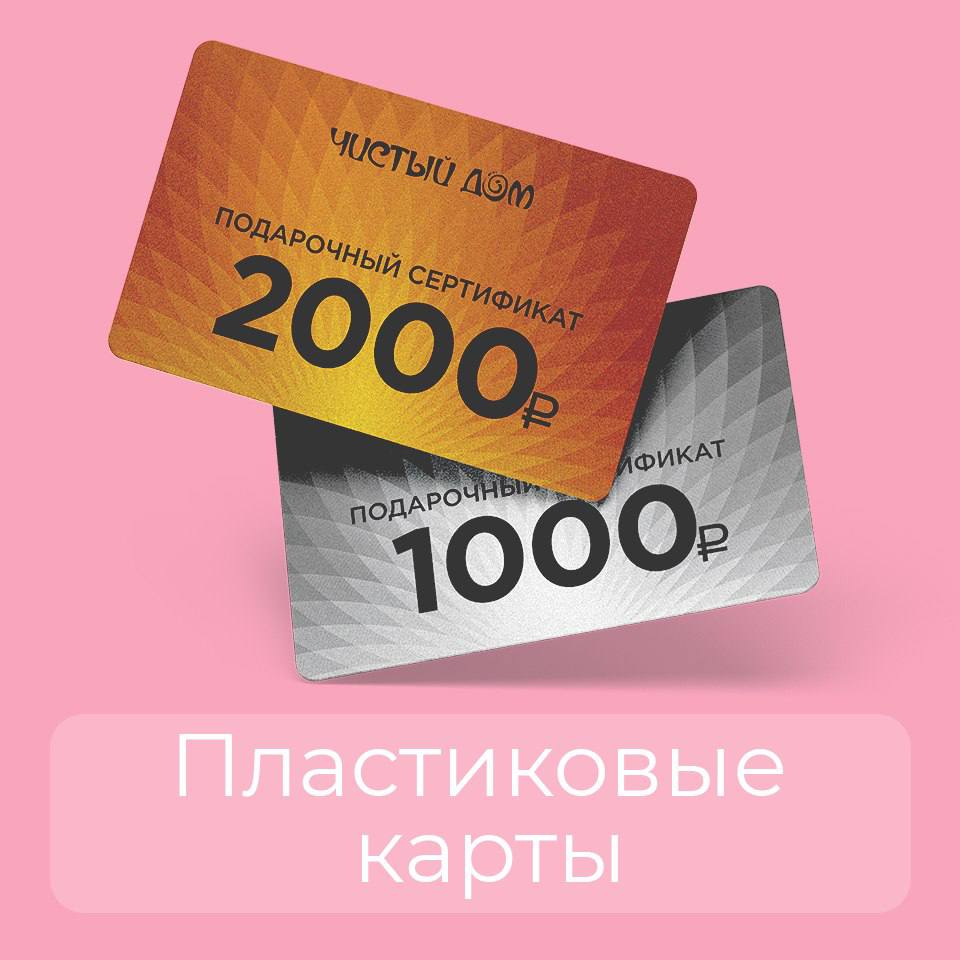Мы предлагаем стильные пластиковые подарочные карты номиналом: 300 ₽, 500 ₽, 1000 ₽, 3000 ₽ и 5000 ₽.