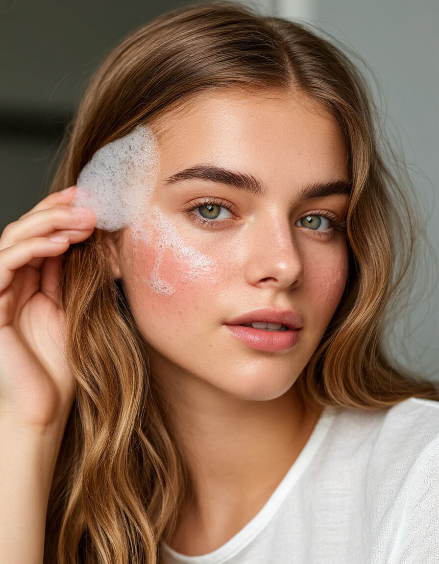 Что использовать: Молочко или мицеллярная вода для снятия макияжа, затем — кремообразная или гелевая пенка для умывания с нейтральным pH. Идеальны очищающие масла или бальзамы, которые растворяют загрязнения, не нарушая липидный слой.
